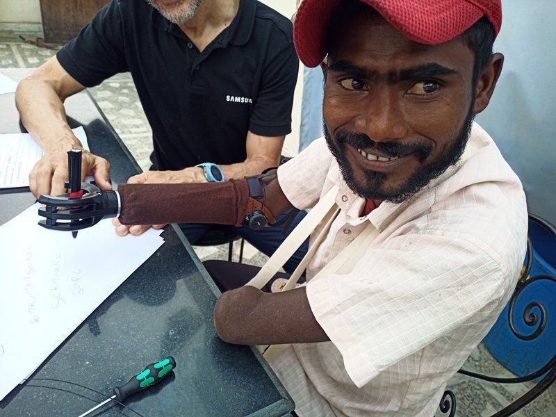 - Weil wir auf den Verdienst bei diesem social Teambuilding verzichten, um so viele The Hand Project Handprothesen wie möglich zusammen bauen zu können
